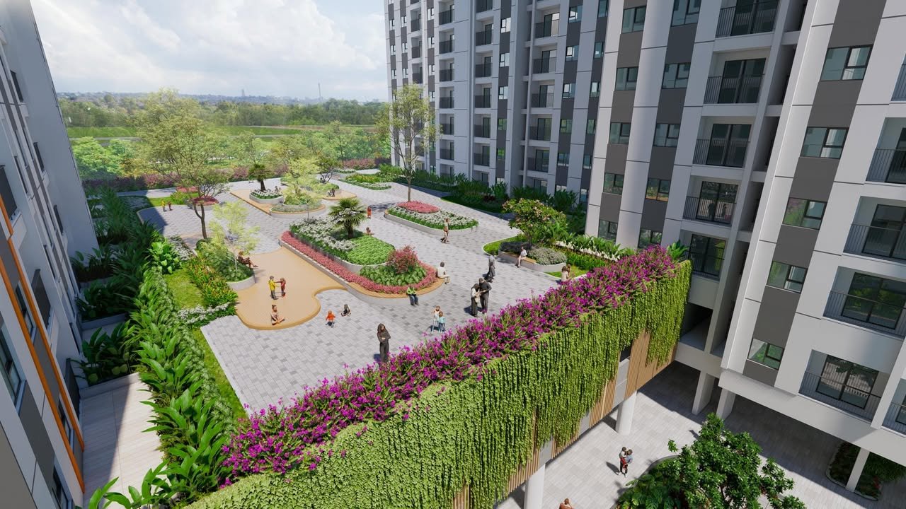 Môi trường sống xanh: Quy hoạch hài hòa giữa khu căn hộ và mảng xanh, hạ tầng tiện ích thiết yếu đầy đủ.