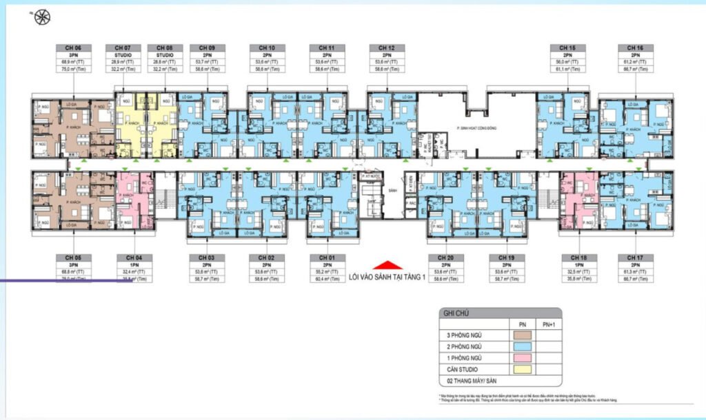 Các căn hộ được thiết kế thông minh – tận dụng tối đa ánh sáng và gió tự nhiên, mang lại cảm giác ấm cúng, gần gũi mà vẫn hiện đại. Nhiều loại diện tích được bố trí linh hoạt từ 27m² – 60m², phù hợp nhu cầu của từng hộ gia đình hoặc cá nhân.