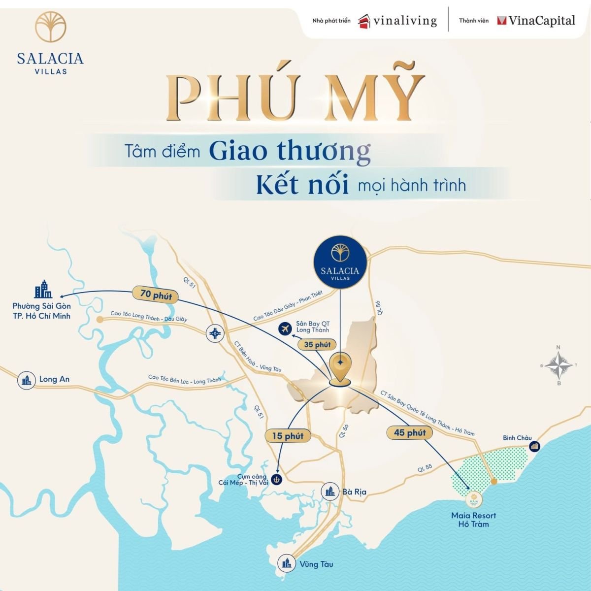 Tọa lạc ngay trục đường huyết mạch Hắc Dịch – Tóc Tiên, Salacia Villas sở hữu lợi thế kết nối hạ tầng hoàn chỉnh cùng hệ thống tiện ích khép kín chuẩn quốc tế. Đây không chỉ là nơi cư dân tận hưởng một cuộc sống an toàn, tiện nghi và xanh mát, mà còn mở ra cơ hội đầu tư tiềm năng trong bối cảnh Phú Mỹ đang phát triển mạnh mẽ trở thành đô thị công nghiệp – dịch vụ sầm uất bậc nhất khu vực.
