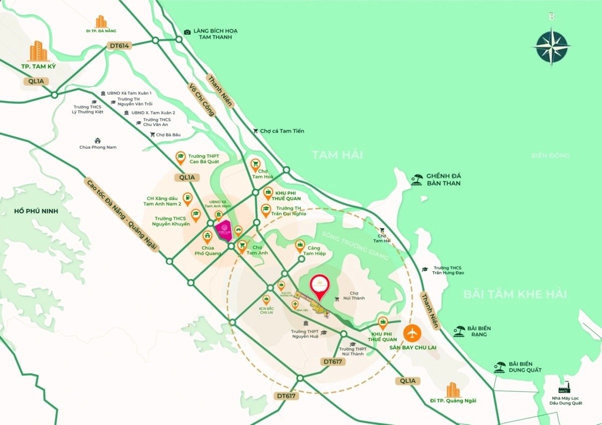 - Vị trí: Xã Tam Hiệp & thị trấn Núi Thành, Huyện Núi Thành, Tỉnh Quảng Nam