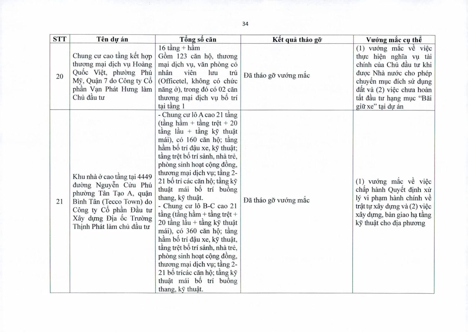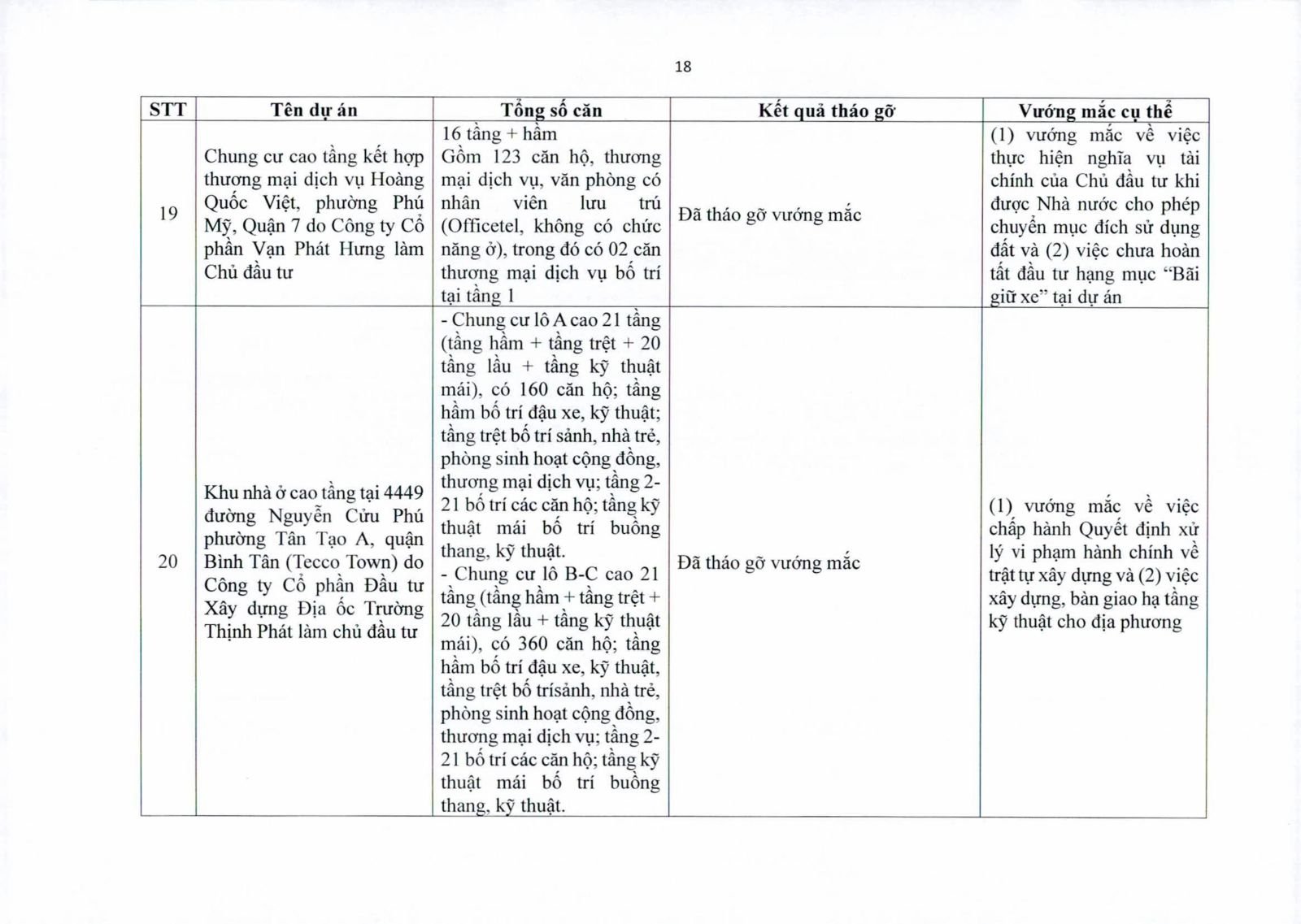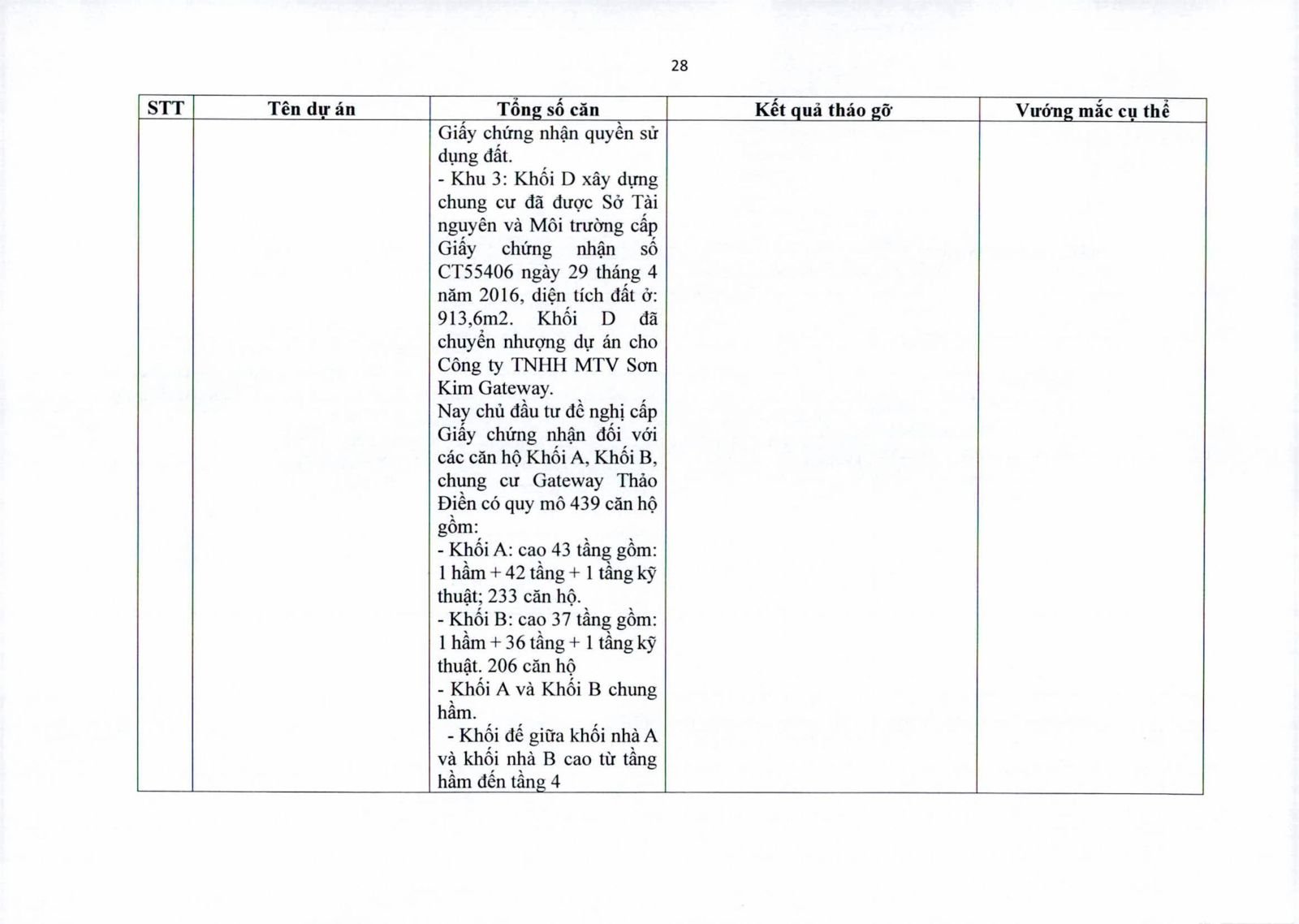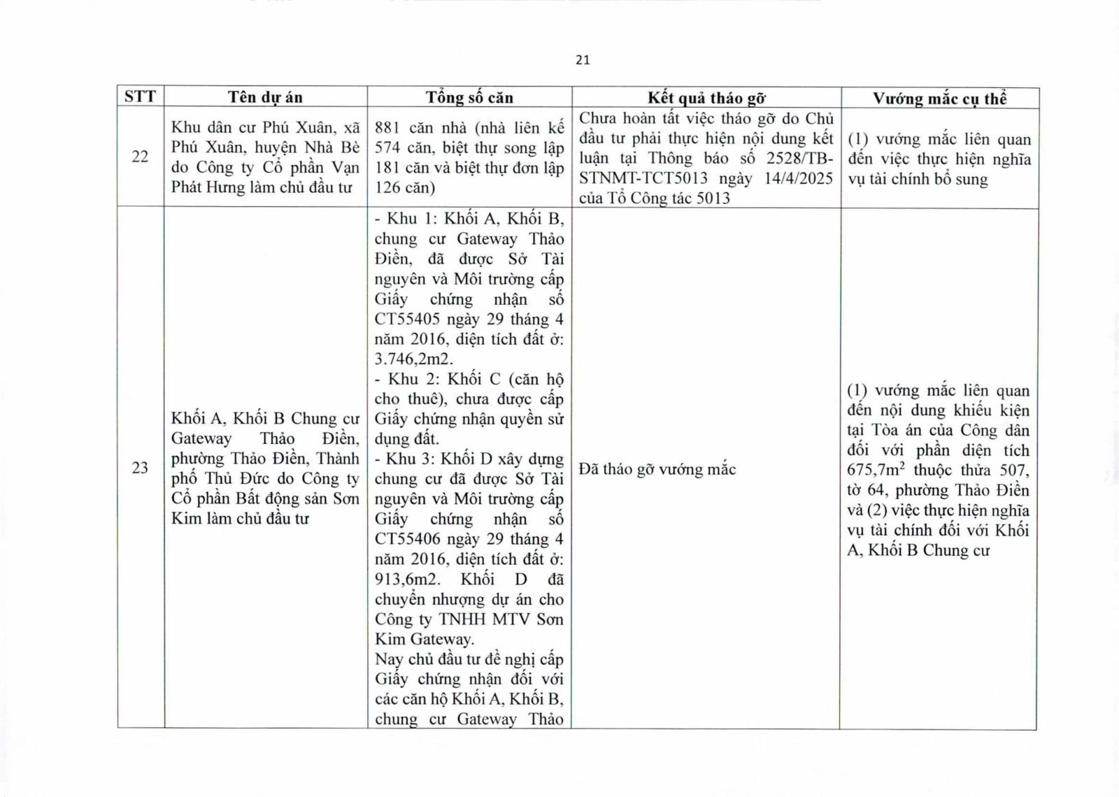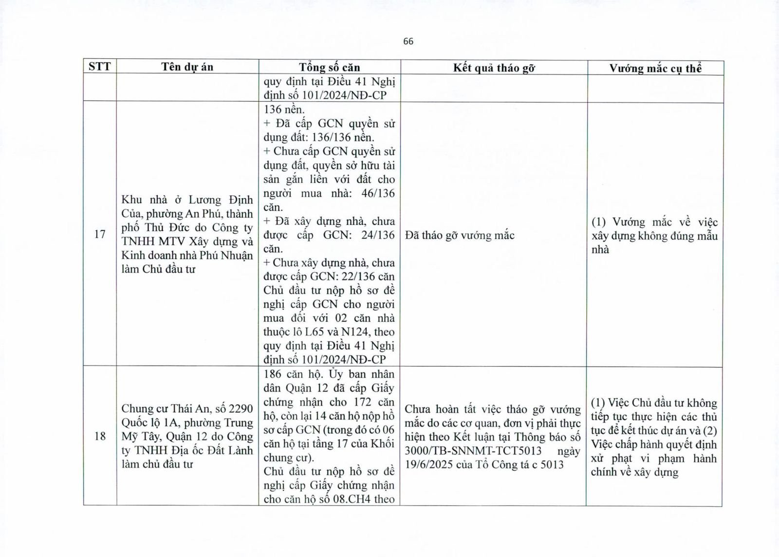 Một số dự án có diện tích đất công xen kẽ, đất giao thông, đất cây xanh chưa hoàn tất thủ tục chuyển đổi. Việc chưa xử lý dứt điểm quỹ đất này khiến hàng trăm căn hộ không thể được cấp giấy chứng nhận.
